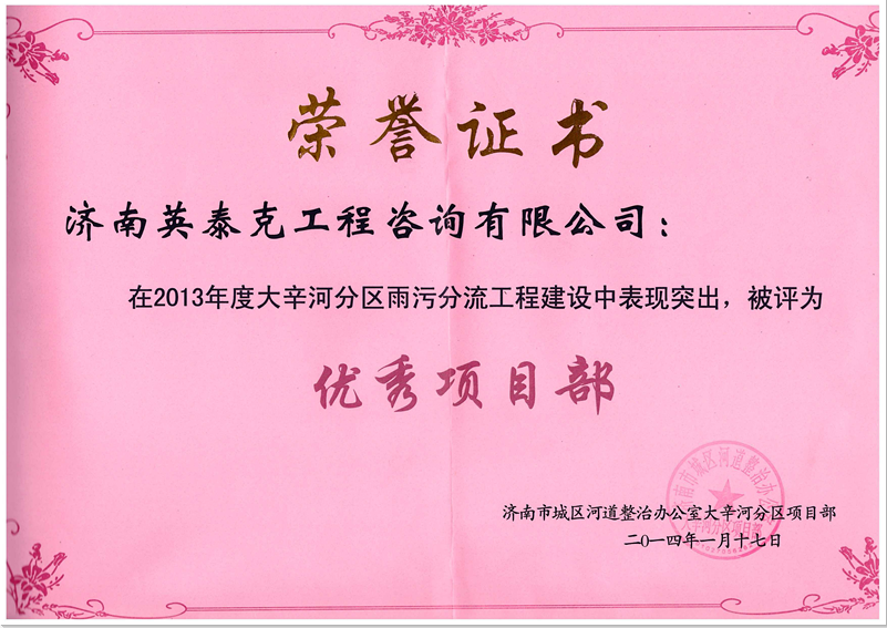大辛河分區(qū)雨污分流工程優(yōu)秀項目部